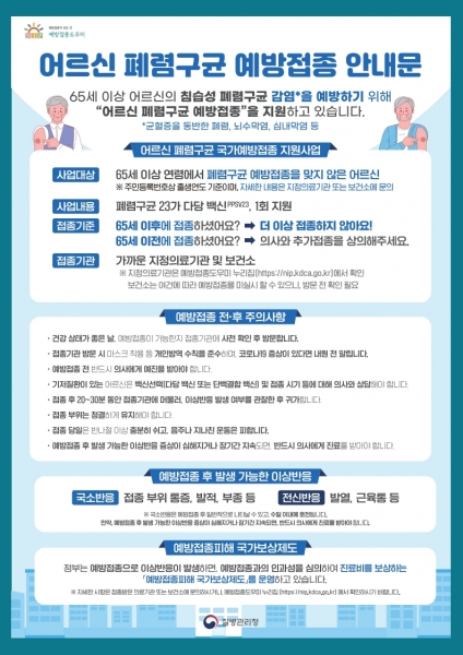 특히 노년층의 건강을 위협하는 폐렴구균 예방접종을 통해 감염을 예방하고 중증 진행을 막는 것이 필요하다.