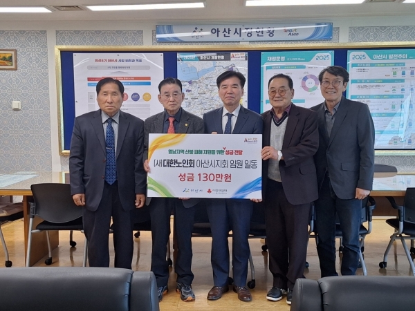 오치석 지회장은 “갑작스러운 대형 산불로 피해를 입은 분들께 깊은 위로의 말씀을 전한다”며 “산불로 피해를 입은 이재민들의 어려움과 슬픔에 공감하며 아픔을 나누고자 사)대한노인회 아산시지회 임원들이 마음을 모아 성금을 마련했다.