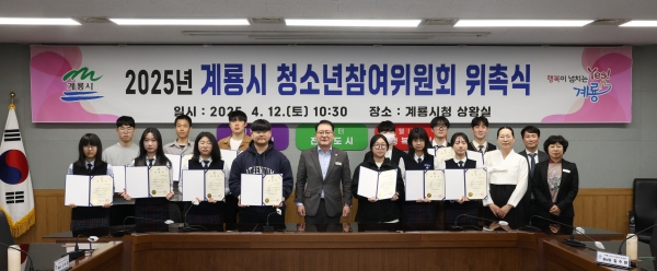 이날 위촉식에서는 위촉장 수여와 함께 활동 계획을 공유하는 시간을 가졌으며 위원들은 계룡시 청소년을 대표하는 책임감을 갖고 지역사회에 기여하겠다는 뜻을 밝혔다.