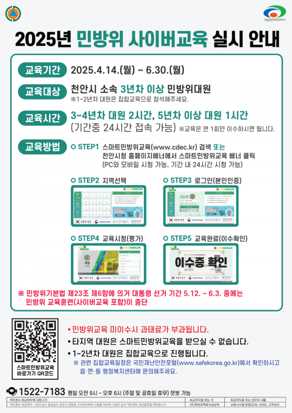 천안시, 2025년 상반기 민방위 교육 실시