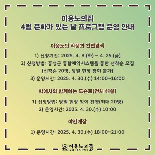 홍성군, 4월 30일 문화가 있는 날 프로그램 운영