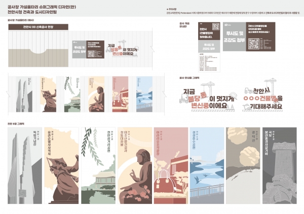 공사장 가설울타리 슈퍼그래픽은 공무원이 직접 기획부터 디자인까지 수행했으며 ‘천안 8경’ 각 명소의 고유한 아름다움과 상징성을 담은 이미지를 울타리 디자인에 담아냈다.