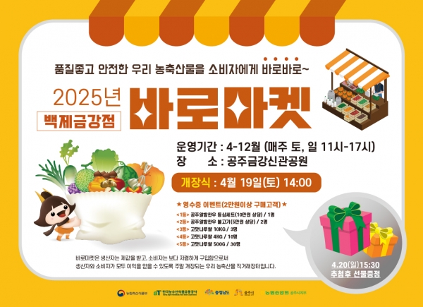 공주시, 지역농산물 직거래장터 ‘바로마켓 백제금강점’ 19일 개장