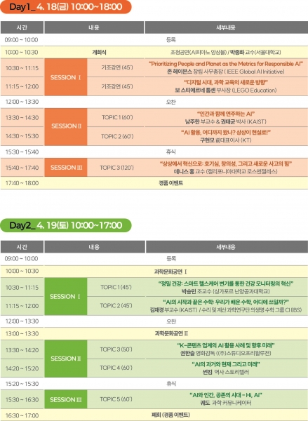 오후에는 권한슬 영화감독, 역사스토리텔러 썬킴, 과학커뮤니케이터 궤도가 인공지능을 주제로 과학과 문화를 아우르는 흥미롭고 이해하기 쉬운 이야기들을 전할 예정이다.