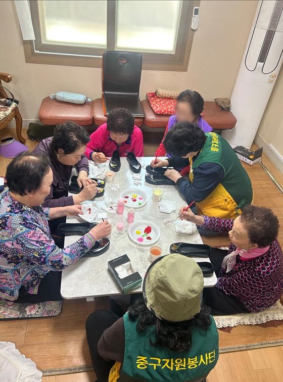 이번 행사는 송진실 회장이 직접 강사로 나서 어르신들과 함께 고무신을 활용해 그림을 그리는 활동을 진행했다.