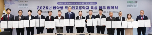 [Ytv영상스토리] 대전시교육청은 4월 16일 교육청 별관 대회의실에서 ‘대전과 함께 성장하는 인재, 대전이 함께 디자인하는 학교’를 슬로건으로 대전의 미래핵심전략산업에 필요한 맞춤형 기술인재 양성을 위해 대전생활과학고등학교, 대전여자상업고등학교, 유성생명과학고등학교 3교가 대전시교육청, 대전시, 지역기업, 지역대학, 유관기관들과 협약형 특성화고 육성을 위한 업무협약을 체결했다고 밝혔다.