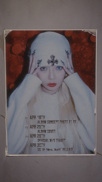 손깍지를 끼고 뒤돌아 서 있는 모습으로 등장한 그는 화려한 아트가 돋보이는 네일로 시선을 사로잡으며 신보를 향한 궁금증을 더했다.