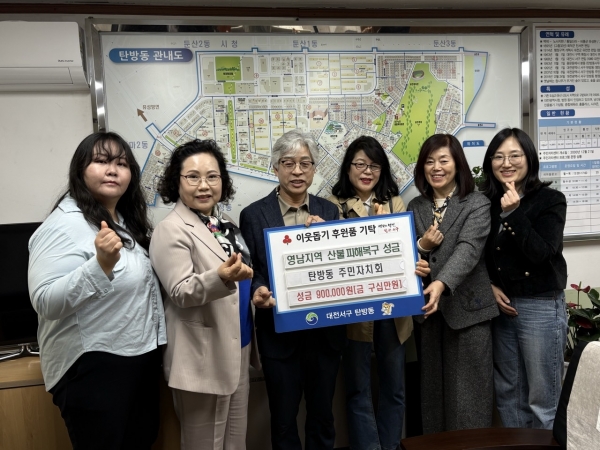 최기영 동장은 “주민들의 따뜻한 마음이 담긴 성금은 산불피해 주민들에게 큰 힘이 될 것”이라며 “탄방동 주민자치회의 나눔 실천에 깊이 감사드린다”고 전했다.