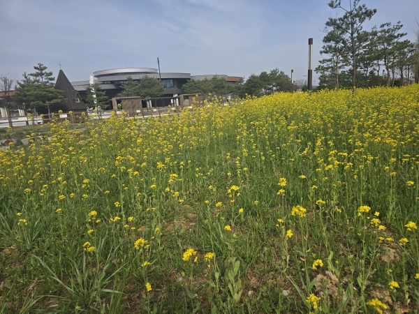 21일 시에 따르면, 지난해 심은 유채꽃이 올해 솔뫼성지에 만개해 아름다운 경관을 뽐내고 있다.