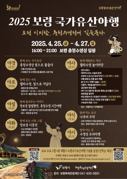 [Ytv영상스토리] 보령시와 보령축제관광재단은 오는 4월 25일부터 27일까지 3일간 ‘2025 보령 국가유산야행’을 개최한다고 밝혔다.