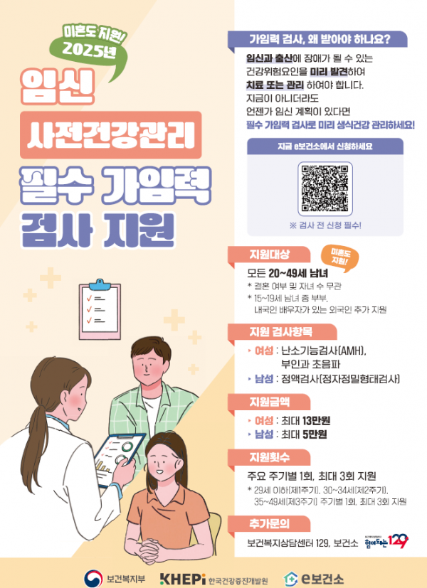 보건소 관계자는 “이번 지원으로 임신 및 출산 고위험 요인의 조기 발견 기회를 제공해 건강한 임신과 출산 준비에 도움이 될 수 있을 것”이라며 “임신을 희망하는 군민들께서 많이 참여해 주시길 바란다”고 말했다.