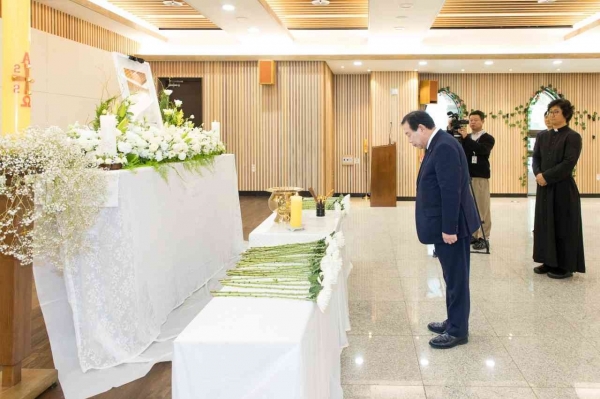 이날 최민호 시장은 분향소에서 프란치스코 교황을 조문하고 소박하고 청빈한 삶을 실천하며 전 세계에 평화와 공존에 메시지를 전파해 온 교황의 넋을 기렸다.