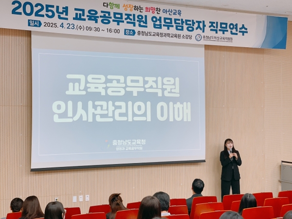 [Ytv영상스토리] 아산교육지원청은 4월 23일 충청남도교육청과학교육원 2층 소강당에서 관내 교육공무직 인사 및 급여 업무담당자를 대상으로 “2025년 교육공무직원 업무담당자 직무 연수”를 실시했다.