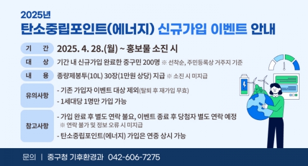 대전 중구, 탄소중립포인트 신규가입 이벤트 실시