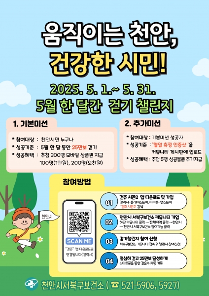 천안시, 5월 한달간 걷기 챌린지… “25만보 함께 걸어요”