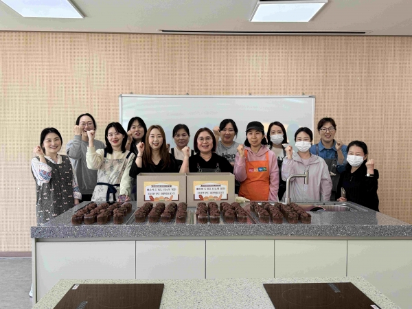 이번 활동은 신도시평생학습관 상반기 프로그램 ‘달달한 홈베이킹 디저트’에 참여 중인 수강생 12명이 중심이 되어 직접 초코머핀 40개를 정성껏 조리하고 개별 포장해 홍성군청소년수련관 방과후 아카데미에 참여하는 청소년들에게 전달했다.