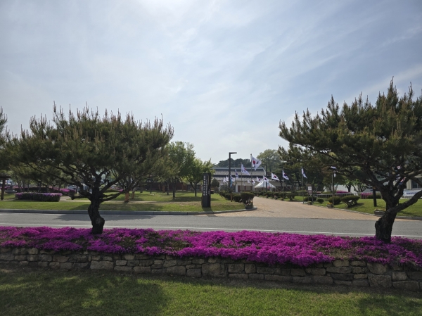 충의사 경내를 가득 채운 꽃잔디, 수선화 등 다양한 봄꽃이 만개해 방문객들의 눈길을 사로잡고 있으며 주변 조경과 어우러져 새로운 사진 명소로 자리잡고 있다.
