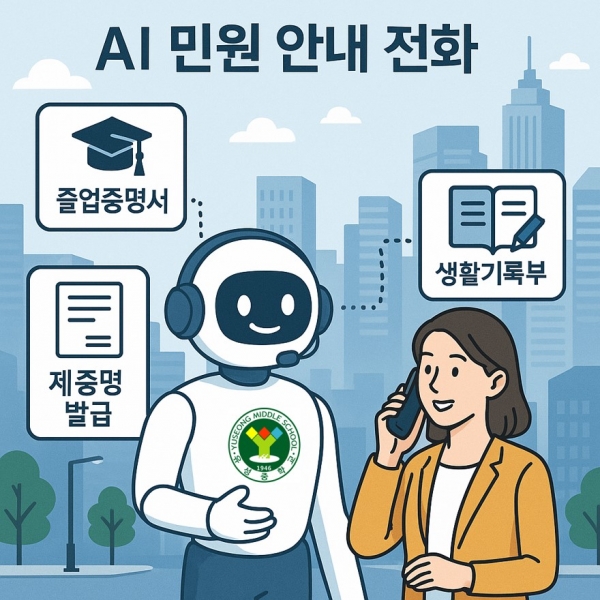 [Ytv영상스토리] 유성중학교는 대전에서 학교 최초로 인공지능 기술을 접목한 AI 민원 안내 전화 서비스를 2025년 5월부터 개통해, 학부모 및 시민들이 제증명 발급 업무를 더욱 쉽고 편리하게 안내받을 수 있도록 한다고 밝혔다.