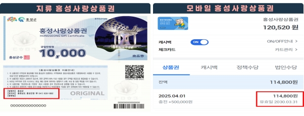 다만, 2022년 이후에 발행한 홍성사랑상품권의 경우 상품권 발행에 할인비용 일부가 국비 지원분이 포함되어 기발행분의 연장이 금지되어 있기에 홍성군은 불가피하게 군민의 입장과 편의를 위해 2020년과 2021년 2개년에 발행한 상품권의 유효기간을 연장했다고 밝혔다.