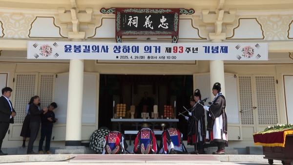 [Ytv영상스토리] 예산군은 지난 4월 29일 덕산면 충의사에서 매헌 윤봉길 의사의 상하이 의거 제93주년을 맞아 기념제를 개최했다고 밝혔다.
