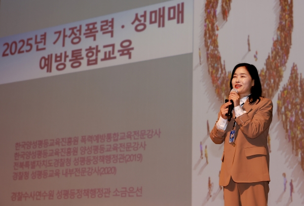강의를 맡은 소은선 경찰수사연수원 성평등정책행정관은 가정폭력·성매매 발생 원인과 사례별 대응 방법을 알아보고 젠더폭력에 대한 국가 및 자치단체의 책임과 사회의 역할에 대해 교육했다.