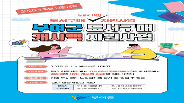 부여군, ‘충남 인증서점 도서구매 캐시백 지원사업’ 실시