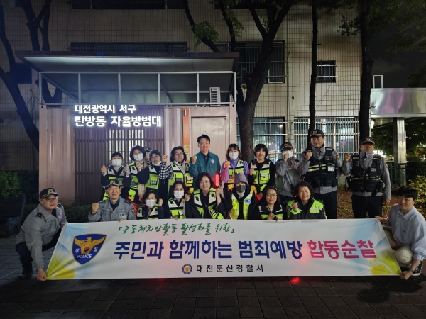 이날 여성자율방범대원을 비롯한 둔산경찰서 둔산지구대, 동 직원 등 30여명이 함께 참여했으며 참여자들은 주민들을 만나 치안 의견을 수렴하고 관내 다가구·다세대 주택 밀집 지역, 학교, 인적이 드문 산책로와 골목길 등 치안 취약 지역을 중심으로 도보 순찰하며 지역 주민의 안전을 살폈다.