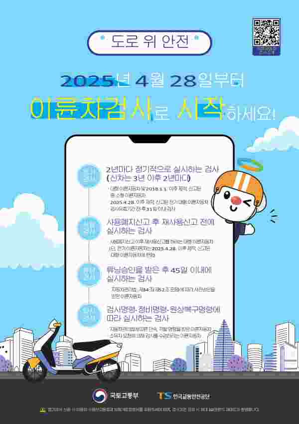 차량등록사업소 관계자는 “이번 이륜자동차검사 제도 시행은 시민들의 안전과 환경 보호를 강화하기 위한 조치인 만큼 대상 차량 소유자들은 반드시 기간 내 검사를 완료해주시기를 바란다”고 말했다.