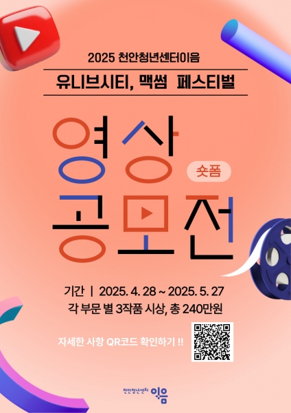 참여를 희망하는 청년은 제작한 영상 콘텐츠를 천안청년센터 전자우편으로 제출하면 된다.