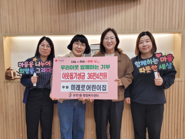 김성아 동장은 “작은 손길 하나하나에 담긴 따뜻한 마음에 깊이 감사드리며 기부금은 어려운 이웃을 위해 소중히 사용하겠다”고 답했다.