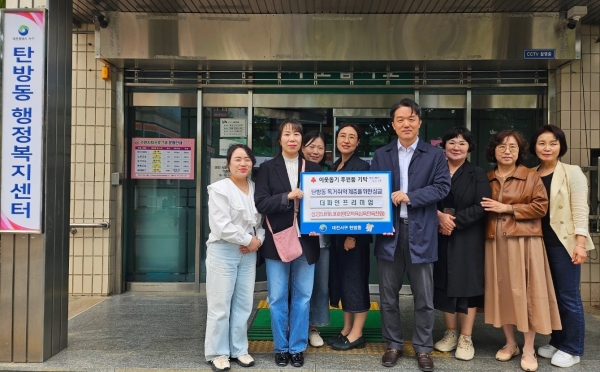[Ytv영상스토리] 탄방동 지역사회보장협의체 는 지난 2일 건강식품 업체 더파인프리미엄으로부터 5월 가정의 달을 맞아 지역 내 어려운 독거가구를 위해 써달라며 성금 566만 6천 원을 기탁받았다고 밝혔다.