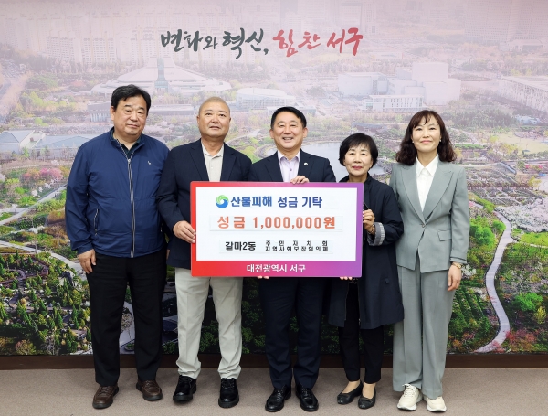 박상근 갈마2동 주민자치회장은 “예기치 못한 산불 피해로 삶의 터전을 잃은 분들께 조금이나마 힘이 되기를 바라는 마음에서 성금을 마련하게 됐다”며 “앞으로도 지역사회와 함께 나눔을 실천하는 활동을 이어가겠다”고 말했다.