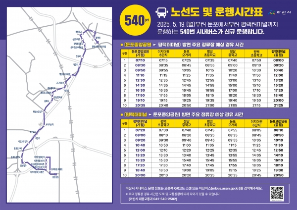 아산시 대중교통과 관계자는 “시민 수요를 반영한 신규 노선 도입을 통해 지역 간 교통망을 개선하고 있다”며 “앞으로도 시민 눈높이에 맞춘 교통서비스를 지속 확대해 나가겠다”고 밝혔다.