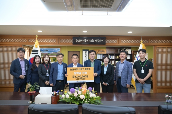 연무고를 졸업한 시청 소속 공무원들의 자발적 친목 단체인 논산시청 연무고 동문회는 올해 연무고 개교 50주년을 기념해, 회비 모금액을 지역 미래인재 양성을 위한 장학금으로 기탁했다.