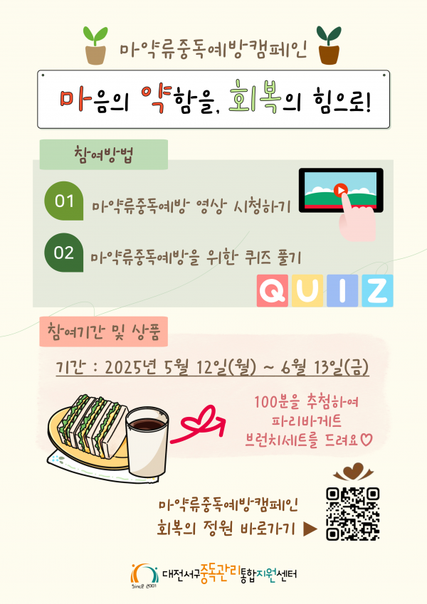 이번 캠페인은 마약류의 위험성과 중독 회복 자원에 대한 정보를 온라인으로 전달해, 지역사회에 마약류에 대한 경각심을 높이고 회복에 대한 인식 확산을 목표로 한다.