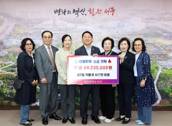 서철모 구청장은 “서구청 직원뿐만 아니라 지역 단체와 구민 여러분께서 함께 마음을 모아주셔서 매우 뜻깊다”며 “산불로 큰 피해를 본 이재민들에게 조금이나마 힘이 되기를 바란다”고 밝혔다.