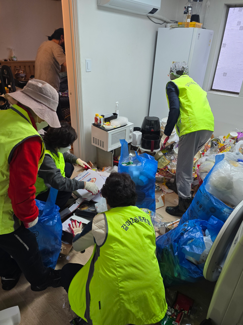 방문 당일 위기가구발굴단과 동 사례관리팀이 대상자와 협력해 1톤 트럭 분량의 물품을 함께 치우며 관계를 더욱 돈독히 했다.