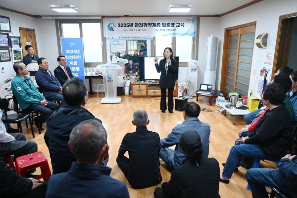 지난 9일 군은 광천읍 덕정마을회관에서 안전취약계층 맞춤형 교육을 실시해 마을주민들의 높은 호응을 얻었으며 지난 2월을 시작으로 오는 6월까지 40회에 걸쳐 생활안전, 교통안전, 재난안전, 범죄안전, 보건안전 등 5개 안전분야를 대상으로 안전취약계층 맞춤형 교육을 진행하고 있다고 밝혔다.