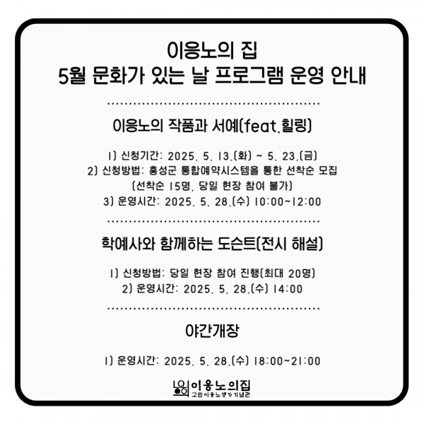 ‘홍성’ 이응노의 집, 5월 문화가 있는날 프로그램 운영