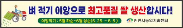 천안시 “적기 이앙으로 최고품질 쌀 생산하세요”