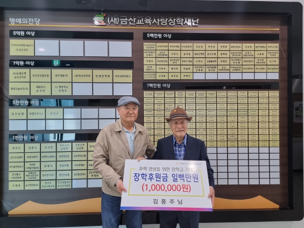 김홍주 씨는 “교육은 지역의 미래를 여는 열쇠라고 믿는다”며 “우리 아이들이 경제적 부담 없이 학업에 매진하길 바라는 마음으로 정성을 보탠다”고 말했다.
