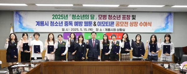 [Ytv영상스토리] 계룡시는 지난 15일 시청 상황실에서 모범 청소년 및 청소년 보호 육성 유공자 표창과 계룡시 청소년 중독 예방 웹툰&이모티콘 공모전 선정자에게 상장을 수여했다고 밝혔다.
