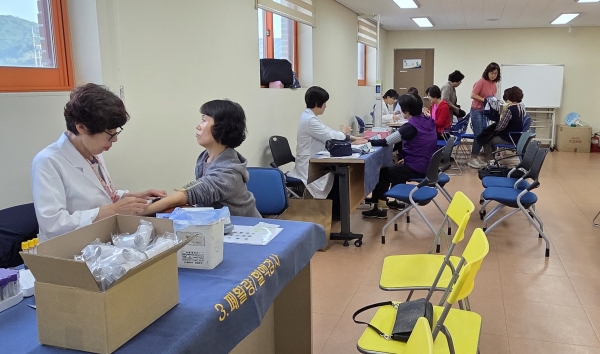 검진은 종합검진이 가능한 병원이 없는 지역 여건을 고려해 이동형 검진버스를 통해 진행됐으며 여성농업인 약 40여명이 참여해 높은 호응을 얻었다.