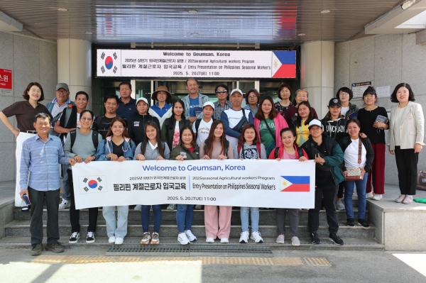 이들은 지난 2023년 필리핀 사블라얀시와의 우호협력 업무협약을 통해 선발된 인력으로 고용주 사전협의 및 비자 발급 등 엄격한 절차를 거쳐 선정됐으며 5개월간 금산군의 농가에 배정돼 깻잎과 상추 수확 등 작업에 투입될 예정이다.