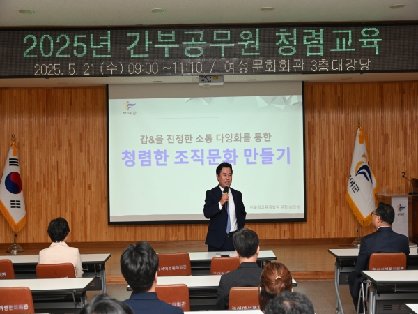 박정현 부여군수는 “청렴은 군민과의 신뢰를 지탱하는 가장 중요한 가치이며 그 실천의 출발점은 관리자에게 있다”며 “간부공무원이 청렴과 존중의 기준을 세우고 솔선수범할 때 조직 전체의 청렴 수준도 함께 향상될 수 있다”고 강조했다.