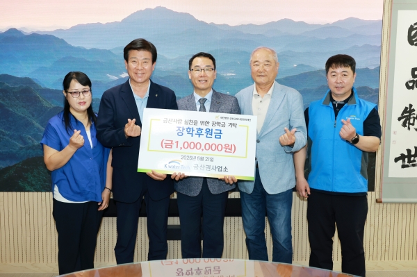 [Ytv영상스토리] 케이워터기술 금산권사업소는 지난 21일 금산군청 군수실에서 금산교육사랑장학재단에 장학기금 100만원을 기탁했다.