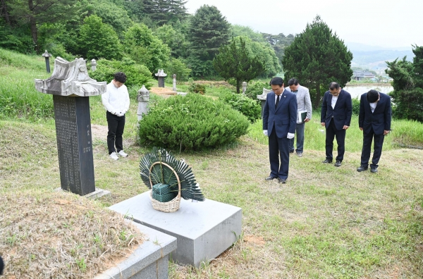 이날 홍성군은 건국훈장 애국장을 받으신 윤익중 유공자에게 참배했으며 애족장에 추서되시고 인근에 안장되신 윤형중, 윤낙중, 윤의석 세 분의 묘소도 함께 찾아뵈며 광복 80주년을 맞이한 우리 선열들의 헌신과 위기 극복 정신을 이어가는 시간을 가졌다.