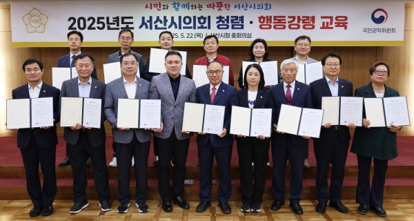 서산시의회는 매년 청렴교육을 실시하고 있으며 앞으로도 공직자들의 청렴 인식을 제고하고 시민으로부터 신뢰받는 서산시의회 구현을 위한 노력을 지속해 나갈 계획이다.