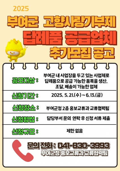 부여군, 2025년도 고향사랑기부제 답례품 공급업체 모집
