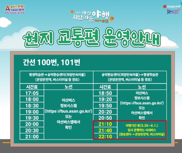 [Ytv영상스토리] 아산시가 5월 30일부터 6월1일까지 열리는 ‘아산 외암마을야행’의 원활한 관람을 위해 임시주차장 3개소를 운영하고 시내버스 야간 임시 운행을 진행한다.